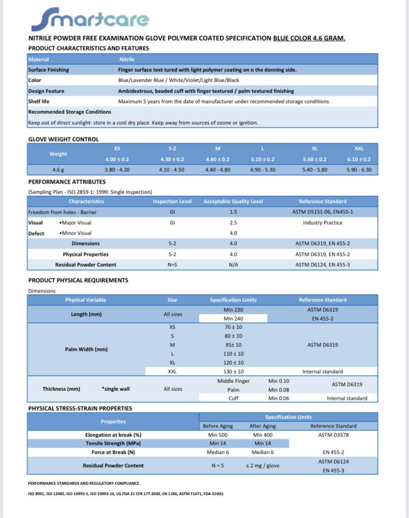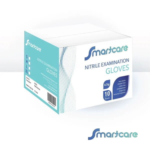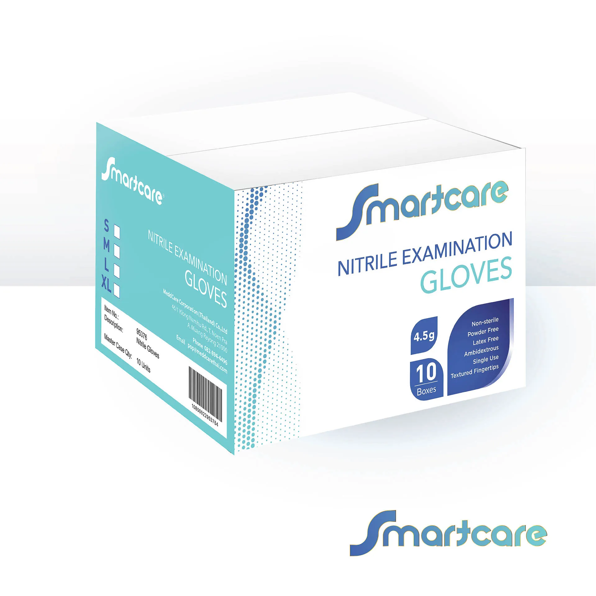 Smartcare ถุงมือไนไตรสีฟ้าหนา 4 mil นำ้หนัก 4.6 กรัม ผลิตจากโรงงาน